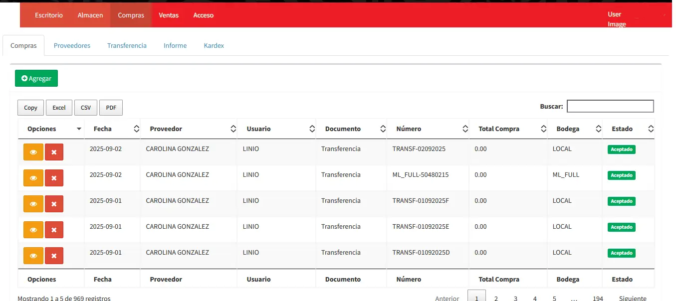 Kardex autom谩tico, para visualizar entradas y salidas de inventario